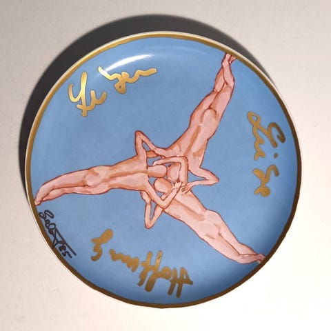 Skål eller porcelænsfad af Salvador Dalí, signeret i relief på forsiden og certifikat på bagsiden.