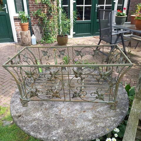 Dekorativt plantespand i metaljern, cirka 2020+, mål 32 × 32 × 43 cm, oprindelse Europa, tilstand som nyt. Klik på den blå "gå til varen" knap, for at købe eller byde på denne vare. Den samlede pris vil blive vist inden du afgiver dit bud.