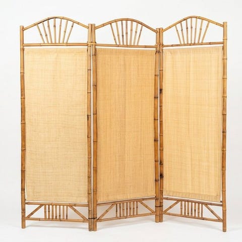 Trepanelet foldeskærm i bambus og rotting med chevron-mønster, lavet i Spanien omkring 1940–1950, i god stand med få tegn på ældning. Klik på den blå "gå til varen" knap, for at købe eller byde på denne vare. Den samlede pris vil blive vist inden du afgiver dit bud.