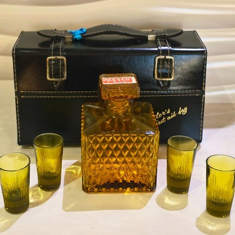 Indhold :, 2 parfymeflasker 1 under det centrale låg 1 kam, 1 skohylde af eksotisk træ, 1 lille tandbørsteetuie belagt med guld.1 børste