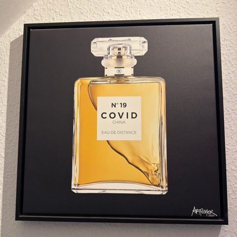 L’intervento grafico – testo bold e tratto rosso tipo spray – trasforma la scena in una tela contemporanea tra pop art e design da cocktail bar.