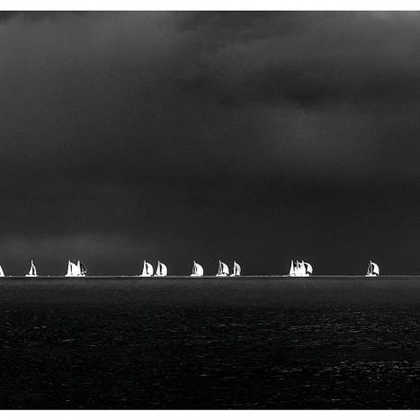 Havets og jordens horisonter breder sig ud som stille løfter, tynde linjer hvor himlen møder det, vi kender. På havet smelter det blå sammen med uendeligheden, og blikket glider let videre, indtil det forsvinder i et fjernt punkt, hvor bølgerne synes at vogte gamle hemmeligheder. På jorden løber bakker og marker i jagt, indtil de udtoner til en svag, rystende linje, behind which alt bliver mulighed.