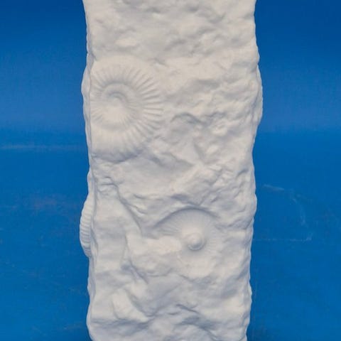 Den blanke hvide porcelæn fremhæver det skulpturale relief, hvilket gør stykket meget dekorativt både med blomster eller som et selvstændigt kunstværk.