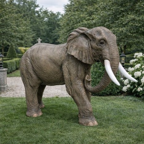 Udendørsskulptur af en hippopotamus, lavet med en avanceret teknik, der kombinerer marmorpulver og harpiks (marmorina). Denne sammensætning gør det muligt at opnå en bemærkelsesværdig skulpturel detalje, en materialeagtig tekstur, der minder om hugget sten, og enestående modstandsdygtighed over for vejrforhold.