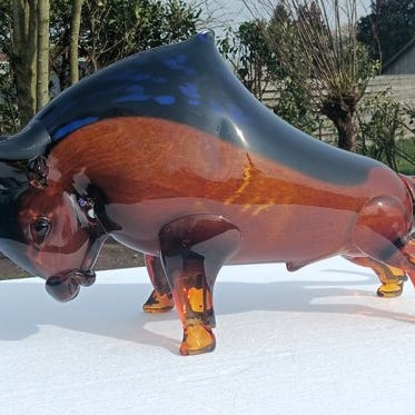 vidunderligt smuk kunsthåndværksmæssig håndlavet bronzen tyr, delvist poleret og delvist antikgrøn patineret