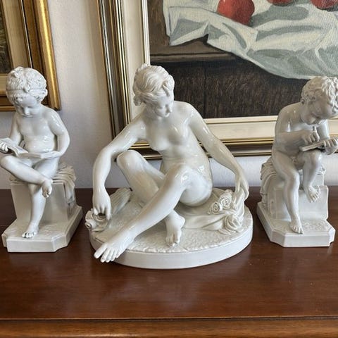 Hvid Capodimonte porcelænsstatuette med romantisk scene, Italien, ca. 1850-1900, mål 20 x 20 x 13 cm, vægt 1,4 kg, stand: som ny – aldrig brugt. Klik på den blå "gå til varen" knap, for at købe eller byde på denne vare. Den samlede pris vil blive vist inden du afgiver dit bud.