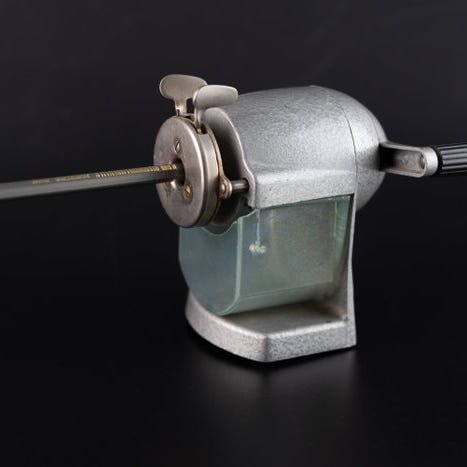 Originalt midtårhundredets sovjetiske skrivebordsspidser-model ШПР-164, komplet med sin fabrikssæske og instruktionsfold.