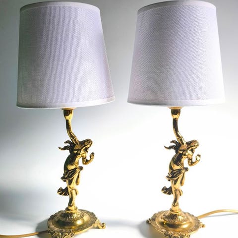 Art Nouveau stil bordlampe, cirka 1890-1910 Italien. I fremragende stand. 12x12x47H cm. Forgyldt bronze. Særdeles sjældent kunstværk.