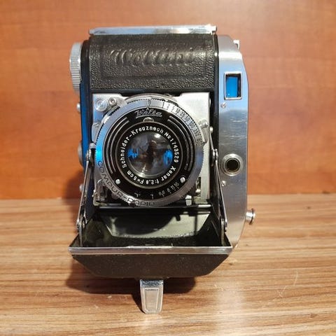 Bessa II Apo-Lanthar nr. 3623123, kamera i meget god stand, testet og i funktionsdygtig stand, fra 1940-1950, leveret med det foringrede læderetui og rem med et lille læderhus indeholdende solskærm og to filtre; vægt 0,870 kg; lukkede dimensioner 17x10x5 cm; farve sort og krom; bemærkning: en skruegevind i bunden er let beskadiget. Klik på den blå "gå til varen" knap, for at købe eller byde på denne vare. Den samlede pris vil blive vist inden du afgiver dit bud.