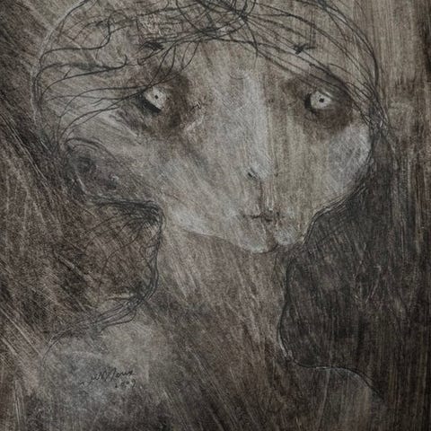 Rara og særegen original sort-hvid fotografi af Mario Giacomelli med titlen “Verrà la morte e avrà i tuoi occhi”, signeret med pen og med kunstnerens stempel på bagsiden.