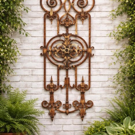 Hængende udendørs lampe i metal med brun finish, estimeret til 1980–1990, 110 cm høj, 32 cm bred, 17 cm dyb, med en buet metalarm og vægbul, jernbur til lys, uden glas, lille dør, fremstillet som ét sammenhængende stykke og ikke i drift, i god brugt stand med mindre aldersspor. Klik på den blå "gå til varen" knap, for at købe eller byde på denne vare. Den samlede pris vil blive vist inden du afgiver dit bud.