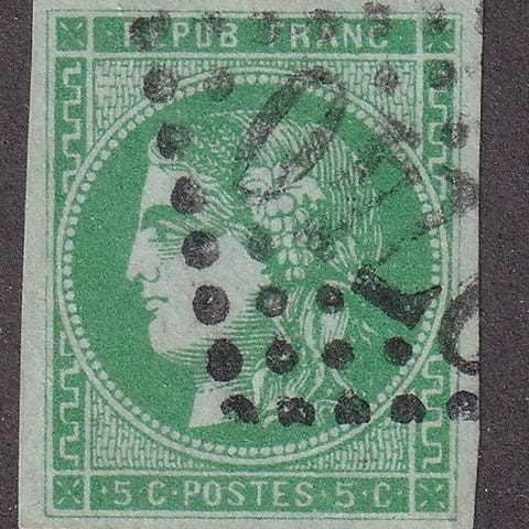 Frankrig, 10c bistre - TTB, oblitereret, Yvert nr. 9. Klik på den blå "gå til varen" knap, for at købe eller byde på denne vare. Den samlede pris vil blive vist inden du afgiver dit bud.
