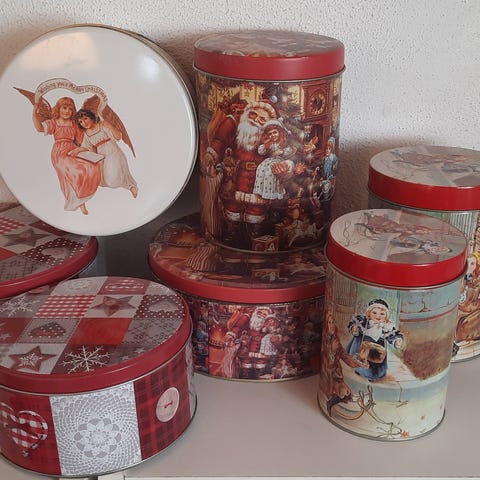 Kagedåser med motiv fra julemærker fra 1966 og 1989.