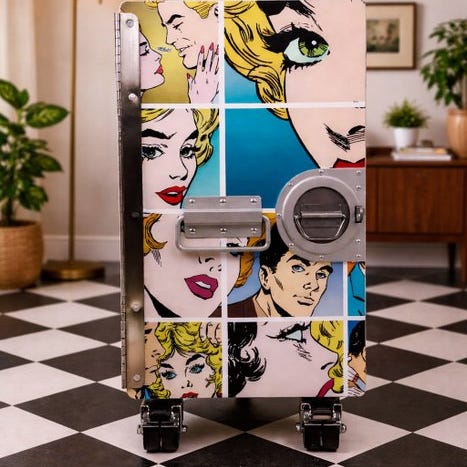 Denne XL flygalley-container er omdannet til en enestående smuk og dekorativ opbevaringsenhed.