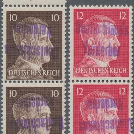Oprindelse Tyskland – lokale postområder, MeiBen: 6 Pf i god nuance på fuldt ark med pladefejl, MNH, Michel 33az og 33azIII, år 1945, pladefejl III V under D på position 60. Klik på den blå "gå til varen" knap, for at købe eller byde på denne vare. Den samlede pris vil blive vist inden du afgiver dit bud.