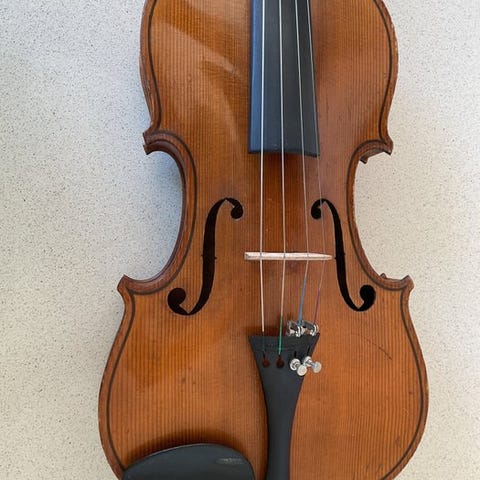 V i o l e n, et Guerneri-model, er nummereret opus 227. Violinen er smukt bygget, helt ned i mindste detaljer med en fin gennemfuret topplade og smukt flammet spejlet bagplade. Karakteristisk er også den gyldengule lak, som denne violinbygger bruger. Endvidere har violinen en varm, klar klang.