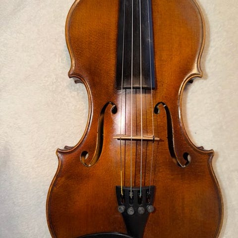 Et instrument med stor tiltrækning og tilstedeværelse, fremstillet efter det berømte Stradivari-model, udtryk for en klassisk lutemagerkunst der ser mod Italien-traditionen med tydelig opmærksomhed på proportioner og linjernes elegance.