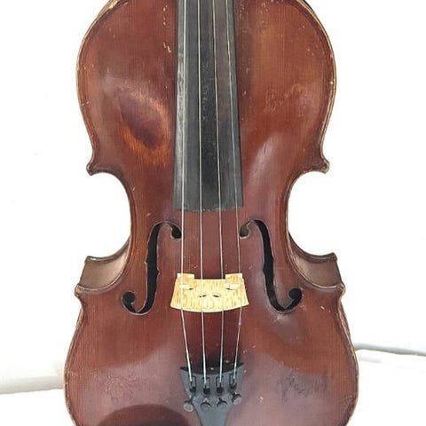 Violin 4/4 inspireret af Stradivari, fra slutningen af det 19. århundrede, i meget god stand, buet inkluderet og testet som funktionsdygtig; samlet længde ca. 60 cm, vægt 388 g, gribebord og stemmeskruer af ebben, top af gran, bund af ahorn, mælkebøtte-lignende ravfarvet lak. Klik på den blå "gå til varen" knap, for at købe eller byde på denne vare. Den samlede pris vil blive vist inden du afgiver dit bud.