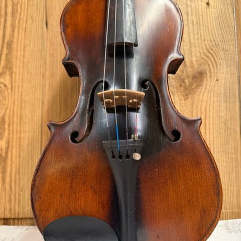 Den cirka 100-årige violin har enkelte brugsspor (se billeder) men er ellers i fin stand. Bemærk den smukt flammerede bagside i ét stykke. Violinen har videre en varmt fyldig lyd.
