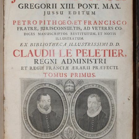 D. Gothofredus, Corpus Jurisa Civilis In Quatuor Partes Distinctum, latinudgave fra 1663 i blindpræget fuld læderindbinding af Hieronymus Polichius, Frankfurt am Main, 2000 sider, 27 x 20 cm, omhandler historie og lov. Klik på den blå "gå til varen" knap, for at købe eller byde på denne vare. Den samlede pris vil blive vist inden du afgiver dit bud.