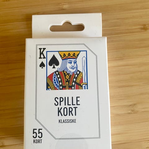 Store spillekort med klassisk rød bagside og almindelige kulører. Kortene er kraftige og nemme at se og holde, gode til spil ved bordet.