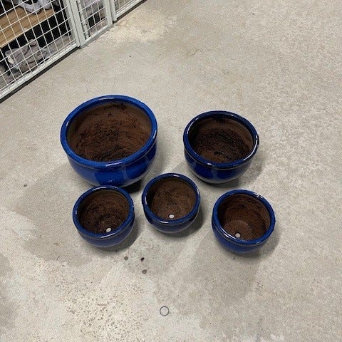 Blå potter 30kr stk ca 20 cm høj (afhent alle 4 i dag for 100kr)
