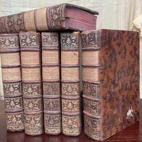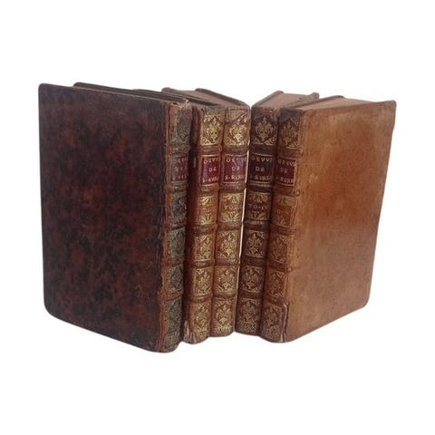 Labat, Nouveau Voyage aux Isles de l’Amerique, illustreret fransk udgave fra 1742 udgivet i Paris af Theodore Le Gras, seks ud af otte bøger tilgængelige i fuld læderindbinding, 2866 sider, indeholder naturhistorie, geografi, kartografi og kolonialt liv i Amerika, med kort og foldede billeder, originalt sprog fransk, samlet set i god stand med udbredt fugtighedssprængning. Klik på den blå "gå til varen" knap, for at købe eller byde på denne vare. Den samlede pris vil blive vist inden du afgiver dit bud.