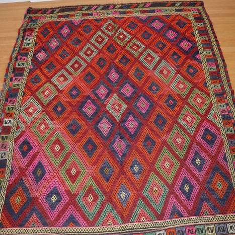 Det er et tæppe, der væves med traditionelle motiver fra Yuruk-regionen.