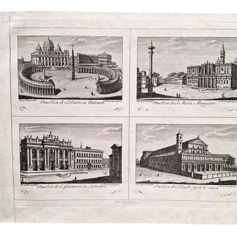 Forstavle farvet litografi.