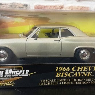 Sun Star 1:18 skala die-cast model af 1961 Chevrolet Impala SS 409 Convertible i cremetone, med åbne døre, motorhjelm og bagagerum, detaljeret motor og interiør samt forhjulsstyring, leveret i originalæsken. Klik på den blå "gå til varen" knap, for at købe eller byde på denne vare. Den samlede pris vil blive vist inden du afgiver dit bud.