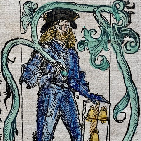 Originalt incunable-ark LV (55) fra Nuremberg Chronicle (Liber Chronicarum), latinsk udgave fra 1493 af Hartmann Schedel med træsnit af Wohlgemut, Pleydenwurff og Dürer; mål 44 × 31 cm, i god stand. Klik på den blå "gå til varen" knap, for at købe eller byde på denne vare. Den samlede pris vil blive vist inden du afgiver dit bud.