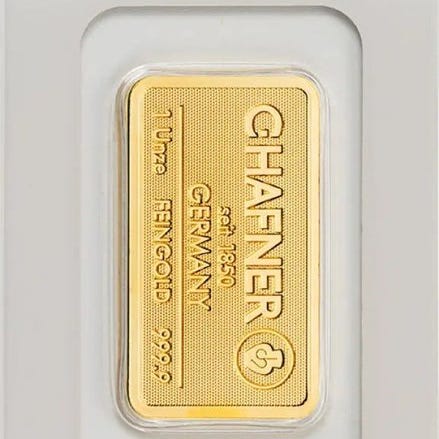 5 gram guldbarre C. Hafner 999,9 fra Tyskland.