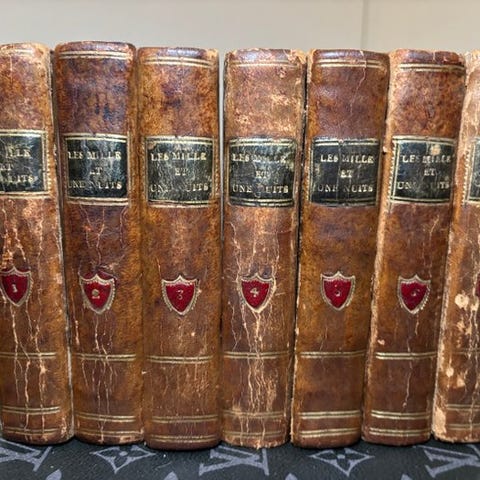Samuel Richardson - Historie af ridder-baroneten Karl Grandison. I en række almindelige breve, oprindeligt bragt frem i lyset af udgiveren af Pamela og Clarissa. - Harlingen, F. van der Plaats / Amsterdam, K. van Tongerlo, 1756/1757 - 7 dele i 7 bind - første og eneste tryk - originale halv-læderbind; rygene forsynet med ribber, guldfremhævning og titelskilte - 23 x 15 cm