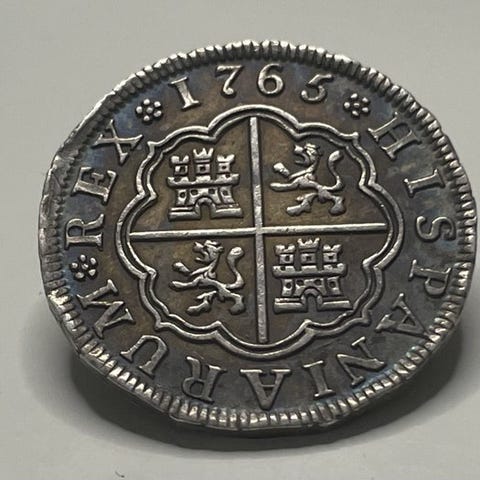 Sølv halvreal mønt af Carlos III, 1769 fra Madrid, vægt 1,5 g, konservationsstatus ikke certificeret. Klik på den blå "gå til varen" knap, for at købe eller byde på denne vare. Den samlede pris vil blive vist inden du afgiver dit bud.