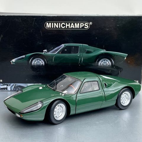 Minichamps Porsche 904 GTS 1964, skala 1:18, grøn, støbt resin, brugt, i originalemballage. Klik på den blå "gå til varen" knap, for at købe eller byde på denne vare. Den samlede pris vil blive vist inden du afgiver dit bud.