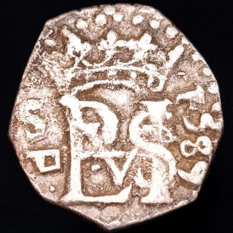 Middelaldermønt i sølv halvreal af Enrique II (1369–1379), slået i Sevilla i Kongeriget Castilien; 1,74 g, 20 mm i diameter, konservation ikke certifiseret. Klik på den blå "gå til varen" knap, for at købe eller byde på denne vare. Den samlede pris vil blive vist inden du afgiver dit bud.