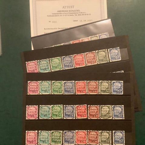 Tyskland – Lokale postområder; Wurzen: 6, 10 og 12 Pf i en stribe af 3 med rød, blå og uden overtryk, 1945, stand: MNH, Michel 5 og 7/8, ekspertunderskrift af Zierer. Klik på den blå "gå til varen" knap, for at købe eller byde på denne vare. Den samlede pris vil blive vist inden du afgiver dit bud.