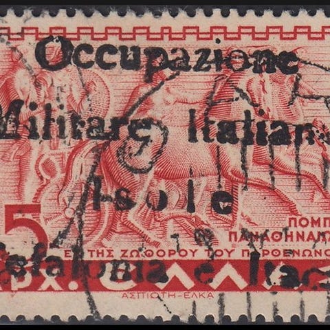 1941 - Mytologiske Grækenland, 15 drakmer grønne med håndovertryk af ITACA "Occupazione Militare Italiana Isole Cefalonia e Itaca" brugt