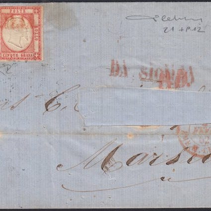 Afsendelsesstempel fra Aix-en-Provence den 28. juni 1853 og ankomststempel meget lidt læseligt