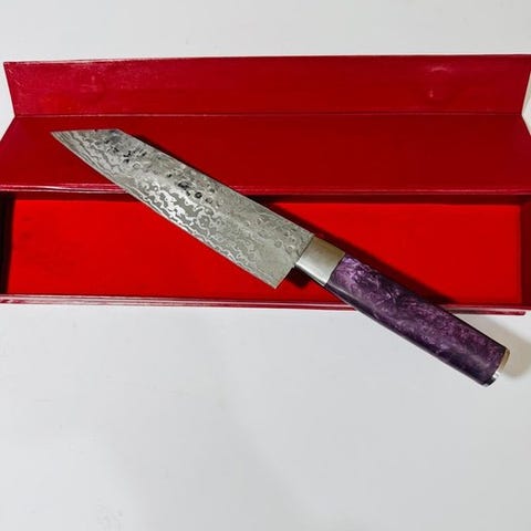 Denne japanske kokkekniv er et mesterligt håndlavet køkkenredskab, designet til at levere præcision, balance og vedvarende skarphed.
