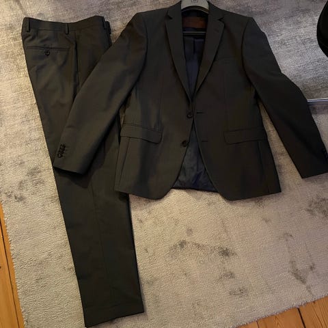 Jakkesæt, Emporio, str. L, Grå, Merino uld, Ubrugt, Ubrugt jakkesæt i størrelse 54