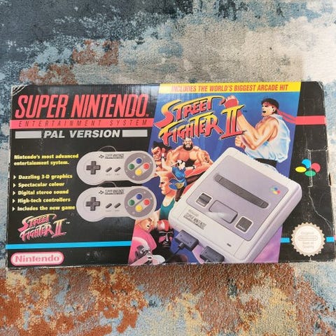1994 Super Nintendo PAL Version-konsol i meget god stand, i originalæske, med tilbehør og 2 spil. Klik på den blå "gå til varen" knap, for at købe eller byde på denne vare. Den samlede pris vil blive vist inden du afgiver dit bud.