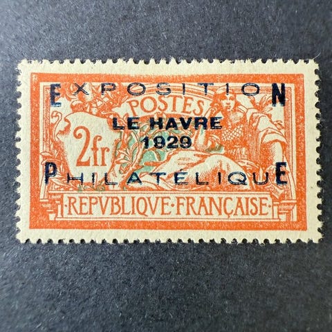 Vi tilbyder frimærket Poste Aérienne Yvert 1a "Merson 2fr orange" écussion cassé i nyt * med hæfte. Frimærkerne i meget god stand, se billeder. Signeret Calves. Sjældent tilbudt.