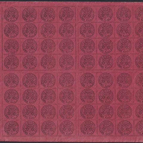 Oprindelse: Pavedømmelsestaten, Stato Pontificio; Titel: I emissione carta a macchina, b. 3 giallo cromo foglio di 100 esemplari; Fra 1863; Sassone nr. 4A; Ingen certificering, ekspertsignatur til stede. Klik på den blå "gå til varen" knap, for at købe eller byde på denne vare. Den samlede pris vil blive vist inden du afgiver dit bud.