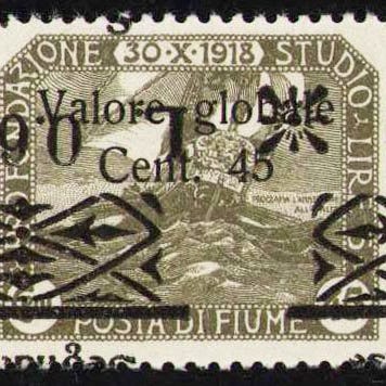 Fiume 1920 - 45 centesimi med overtryk i fed skrift. Certifikat - Sassone 112