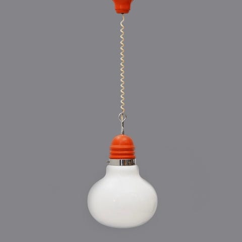 Vintage Artemide Murano 1970 , mundblæst Murano glas Ø 30 cm H 40 cm med orange/ krom metal ophæng. Topstand