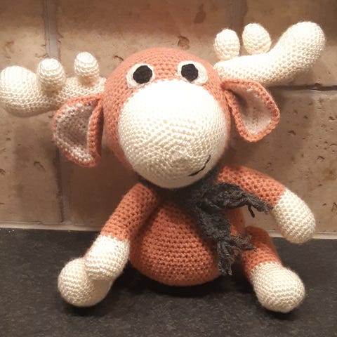 Denne hjemme hæklede bamse er lavet af acryl og uld og vat som fyld og er helt ny Den er 22cm høj