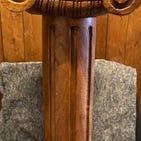 Piedestal i Mahogni og Nødetræ,konisk sekskantet.