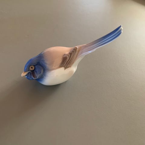 Fin B&G porcelænsfigur af en papegøje, der sidder på en gren. Flotte blå og lyse nuancer og tydelige stempler under bunden.
