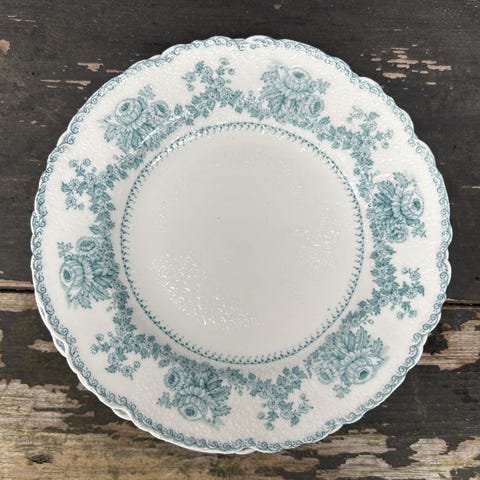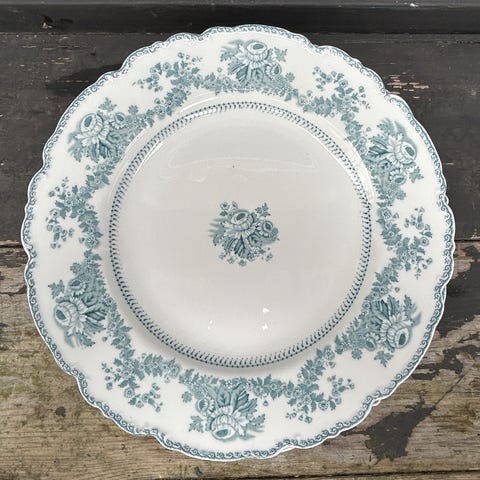 Vintage engelsk porcelæn Johnson Bros Raleigh Dyb tallerken 7 stk. blågrøn